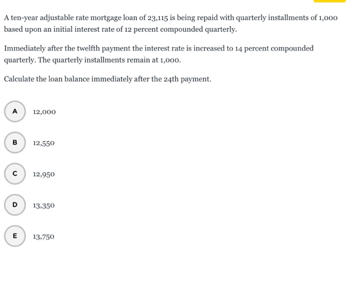 Solved A Ten Year Adjustable Rate Mortgage Loan Of 23 115 Is Chegg Com